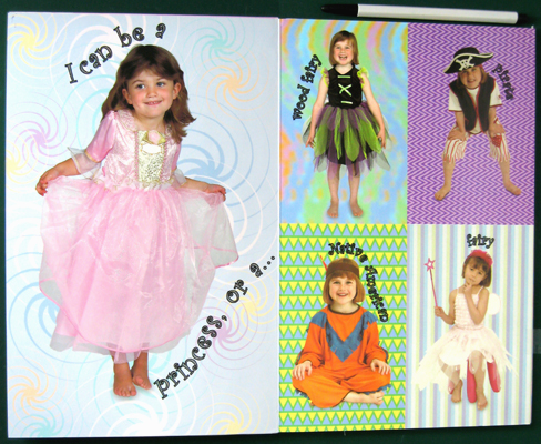 This interactive mix-and-match book features two full-color-photo models that kids can dress as several characters. Simply raise the hinged flap, place pieces of the material over the model, and close. Comes with 15 fabric squares to create different costumes. Consumable.