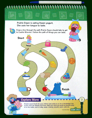 These new wipe-off books from Sesame Workshop and Learning Horizons are designed to give your child a wide variety of learning activities. Because marks are easily wiped off the pages with a cloth or tissue, kids can complete the activities again and again. In this workbook, your child will learn the difference between "everyday" foods and "sometimes" foods. He or she will learn all about fruits, vegetables, and other healthy foods that give us the energy to think, learn, and play all day! A special "Explore More" features includes easy-to-do home activities to extend learning in practical ways. Picture icons help make activity directions easy for your learners to follow.