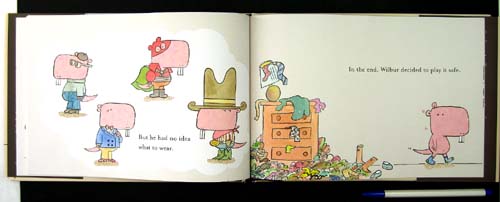 Willems's contemporary fable concerns the way in which a young member of the species "naked mole rats" is different. As the nomenclature suggests, the group does not wear clothing, with the singular exception of Wilbur. His extensive wardrobe, ranging from a tuxedo to a space suit, and his insistence on wearing it, cause much consternation and criticism from his colony. At last, they consult Grand-pah, "the oldest, greatest, and most naked naked mole rat ever." He calls a town meeting. To everyone's surprise, particularly the protagonist's, Grand-pah arrives in a seersucker suit and waxes eloquent on the wisdom of Wilbur's simple question: "Why not?" Converts abound and a celebration ensues in which some dress up and some do not, but everyone has fun. Willems has a talent for creating funny lines, verbally and visually. Beige backgrounds provide an uncluttered stage for his pink creatures with their oversize rectangular heads, each conveying a distinctive personality. Much of the humor resides in the subtle changes in Wilbur's eyes and, of course, in his colorful costumes. Adults will embrace the message of tolerance, happy to have a tale that can be shared with young children. They will also appreciate the hints of Charles Schultz that surface here and there. Kids will giggle-and wish their daily dramas had similar endings. Now, however, they'll have a script.