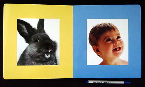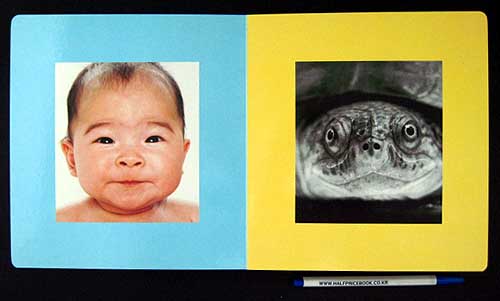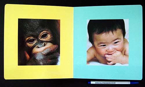 This simple, wordless book has instant appeal despite its misleading title. Each spread features two photographs: a picture of an animal faces a human baby in a similar pose. One spread has a baby lying on its stomach with its knees bent out opposite an image of a frog. Another page has a baby with its eyes closed, mouth open, and tongue sticking out, and the facing page depicts a yawning lion. Each photo is centered on a pastel-colored background. The matches are incredibly effective, and the photos are both crisp and attractive, whether in color or in black and white. While not all of the animals are "babies" (the frog clearly is not, and some of the others are questionable), all are appealing and work well with their human counterparts. Youngsters love to look at pictures of animals and of other babies, so this title is sure to please, even though the animals are not all immediately identifiable. Conceptually interesting, this lovely board book will enhance toddler collections.