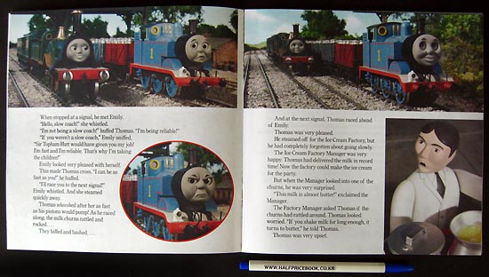 First, Thomas is taking milk to the dairy to make ice cream for a big party, and if he goes too fast, the milk will churn into butter. Second, Sir Topham Hatt has arranged for all the engines to go get a new coat of paint . . . but why was Toby left out? And third, when Neville - a new engine - is seen talking to diesels, none of the steamies will speak to him . . . not even to warn him that the bridge is out!