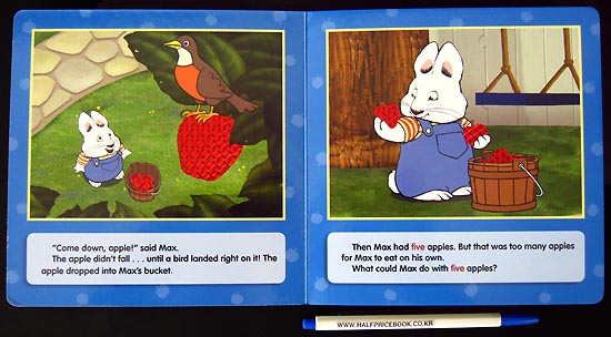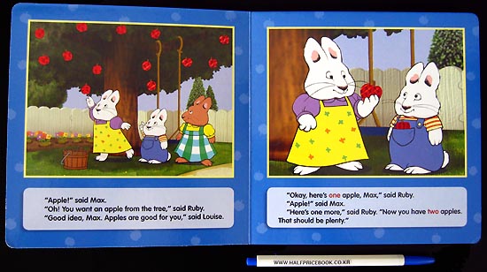Over and over again, Max asks Ruby to pick him apples from their tree. She cant imagine why he wants so many apples, but finds out when Max finally asks her to a make a pie! This simple story will have your little bunny practicing counting from one to five.