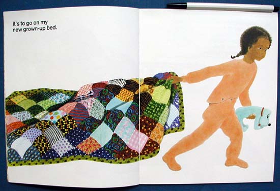 The illustrations are excellent. The quilt is very colorful and the child's clothing, hair and skin colors are soft and pleasing to the eye. It is a pleasure to read a beautiful book with a Black child as its protagonist. This book would make a wonderful gift for any youngster.