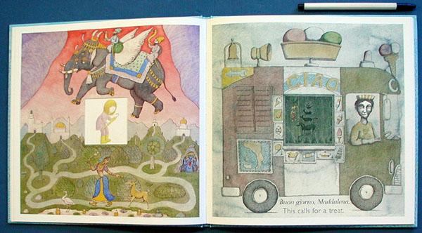 Madlenka, whose New York City neighbors include the French baker, the Indian news vendor, the Italian ice-cream man, the South American grocer, and the Chinese shopkeeper, goes around the block to show her friends her loose tooth and finds that it is like taking a trip around the world.