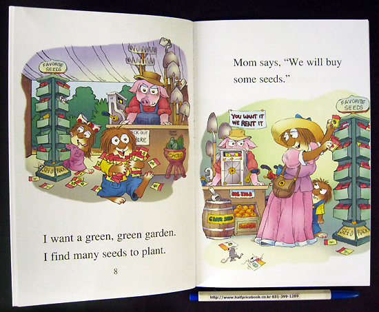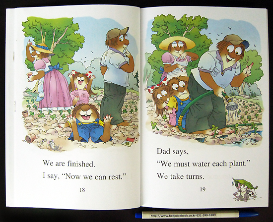 Little Critter and his family plant some vegetables. After lots of watering, weeding, and waiting, they enjoy a delicious meal—all from their green, green garden.