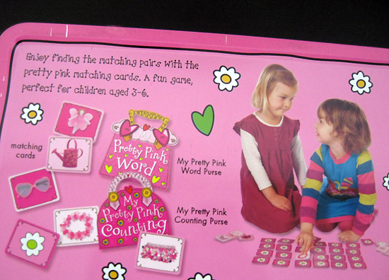 This kit includes 36 matching cards, and two board books - My Pretty Pink Word Purse and My Pretty Pink Counting Purse - all packaged in an easy-to-carry lunchbox tin. Learn the numbers counting and words, and enjoy finding the matching pairswith the pretty pretty pink matching cards. A fun game, perfect for children aged 3-6.
