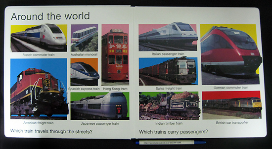 From monorails to freight trains, steam trains to cable cars, this book is packed with pictures of all kinds of trains from all over the world