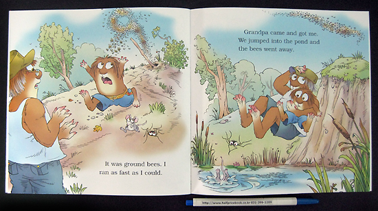 Summertime is here. Little Critter heads off for a day at his grandparents' farm. He loves to fish in the pond and collect frogs, but he doesn't love to swim. Little Critter doesn't really know how to swim. But with the help of some bees he's kicking and paddling like a pro.