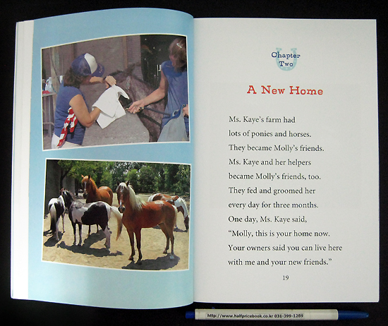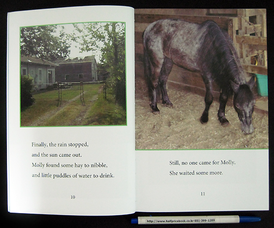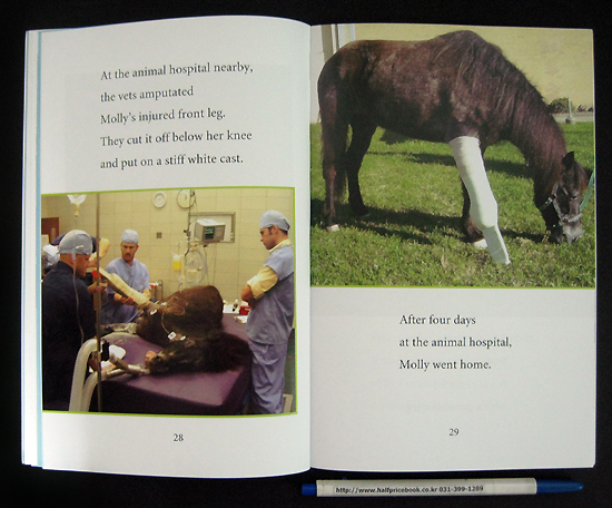Molly, a pony, was found in an abandoned barn two weeks after Hurricane Katrina. Once rescued, she was groomed and given a home with other ponies at a stable. One day a dog bit her and the wound did not heal. Her leg was amputated and she was fitted with a prosthetic leg. When Molly was able to walk again, she began visiting children in hospitals and adults in a retirement home. The even tone in Kaster's text renders what might be a maudlin story into an engaging narrative. Unattributed dialogue describes the scene of Molly's rescue, which provides context for readers. High-quality color photos thoughtfully placed on nearly every page capture the tranquility of this pony and the many places she visited. This unique and well-crafted book will appeal to beginning readers everywhere, who will cheer and be inspired by Molly as she overcomes obstacles and enjoys a productive life.