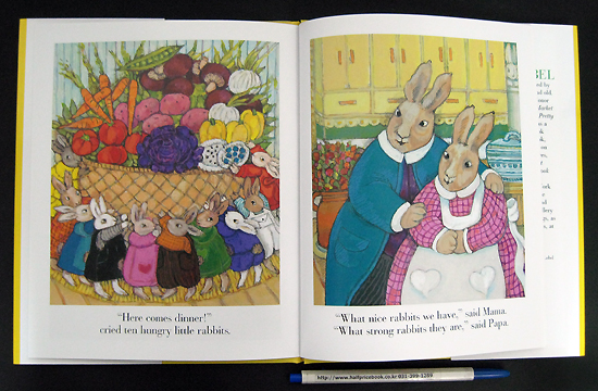 In this introduction to numbers and colors - which also champions healthful eating - poor Mama Rabbit doesnt have anything to feed her hungry brood, so Papa Rabbit sends the little ones out to find the makings for a delicious soup. The 10 young bunnies head to the garden, each gathering colored vegetables and fruits (purple cabbage, yellow peppers, blueberries) in increasing amounts, from 1 to 10. Lobels gouache and watercolor illustrations are chock-full of charm and detail, especially the adorable, rotund rabbits - direct descendants of Beatrix Potters and Clement Hurds classic cottontails. However, its the educational components that are rightly front and center here, with both numbers and colors prominently highlighted, close-ups of grouped items for counting, and simple lines of descriptive text (The seventh rabbit spotted SEVEN BROWN mushrooms). An early learning concept book is an obvious choice for one-on-one sharing, but the books appealing scenes and petite size make it a good fit for little browsers, too. Preschool.
