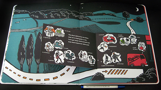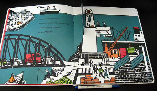 The latest from Joelle Jolivet and Jean-Luc Fromental, the bestselling duo behind 365 Penguins, this book follows Rapido the messenger and his van throughout the city as he delivers packages. Clever flaps on every page give him hints into peoples lives and clues as to what hes delivering, and where. The objects that Rapido delivers are represented as symbols, which readers can decipher from the setting and the rhyme. To help with the clues, a packing list of all the objects in Rapidos truck is provided on the title page. Its an interactive treat that celebrates city life and transportation and that features the striking art that has made Jolivet an international sensation.