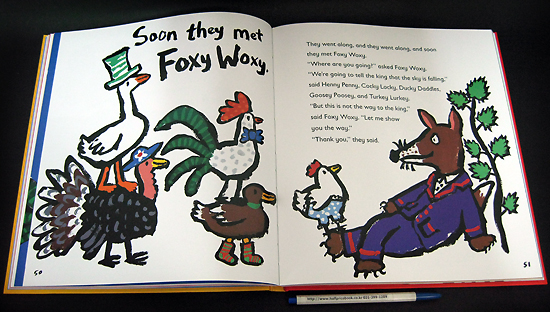 Beloved classics are successfully served by these bold, striking renditions. There's no sugarcoating here, as the wolf in "Little Red Riding Hood" is shown receiving his gruesome comeuppance and Henny Penny's friends never return from Foxy Woxy's lair. Large, arresting gouache spreads in Cousins's signature style utilize saturated colors and thick, dark outlines against solid backgrounds. Expressive characters enhance the stories' shifting moods. Large type accentuates the dynamic texts, building each spare entry to its powerful climax. Crisp retellings of "The Little Red Hen," "The Three Little Pigs," "Goldilocks and the Three Bears," "The Musicians of Bremen," "The Three Billy Goats Gruff," and "The Enormous Turnip" round out this arresting volume.