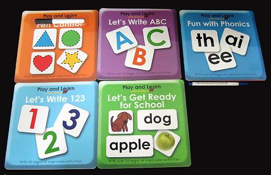A great early learning activity box containing six 24-page, wipe-clean books to help kids get ready for school: Alphabet Fun, Number Skills, Fun with Phonics, Number Fun, and Simple Spelling. The box has a carry handle, and includes a wipe-clean pen.