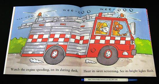 "Big Bold fire engines, waiting day and night, Ready for a rescue or a blazing fire to fight. As soon as there's a fire alarm, the engines start to roar. The firefighters jump aboard...it rumbles out the door." Jump aboard a bright red fire engine with a trio of friendly animal firefighters as sirens wail, lights flash, fire hoses squirt, and fires blaze -- in this story that blends action and rhyme with all the details kids want to know about one of their favorite machines. The mix of visual entertainment and lively wordplay ensures that young children will delight in the reading experience, as will the adults fortunate enough to read aloud these irresistible rhymes!