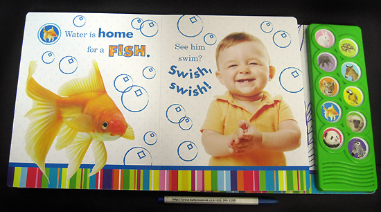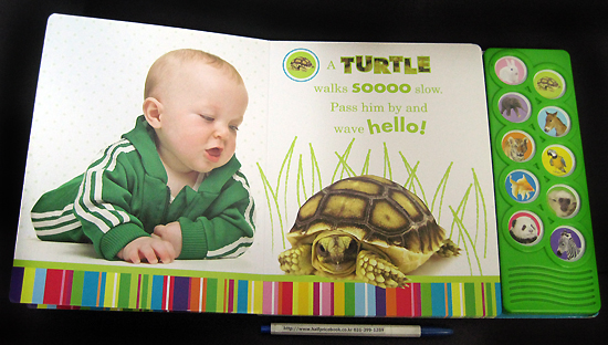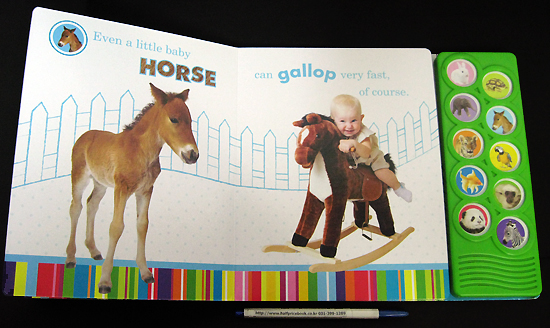 Read simple rhymes aloud as your little one discovers the surrounding world and learns basic words. Press the buttons to hear the words spoken, along with matching animal sounds.