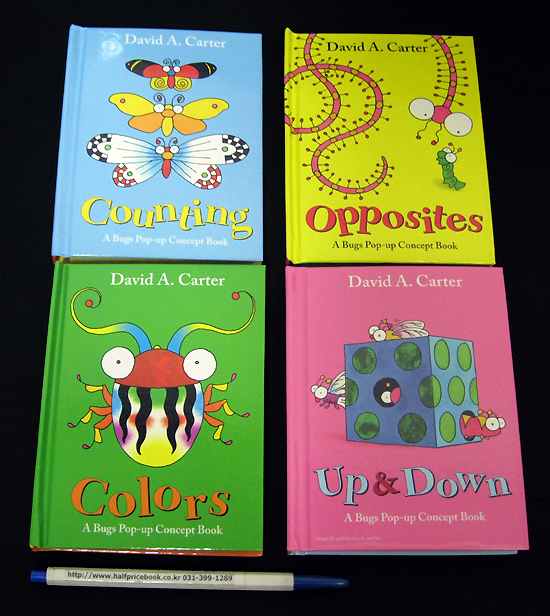 This brightly colored BUGS boxed set from David A. Carter will include four mini pop-up books united by a first concept theme. Package includes: Colors, Opposites, Counting and Up & Down.