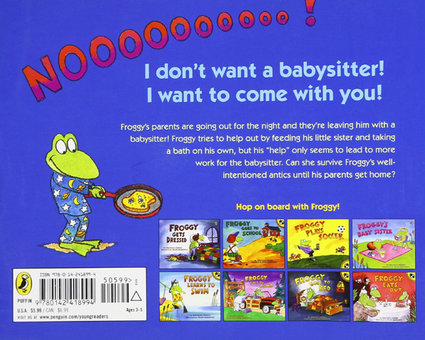 Froggy's parents are going out for the night and they've left him with a brand-new babysitter! Froggy tries to help out by feeding his little sister and taking a bath on his own, but only Froggy could create havoc in the kitchen and turn bath time into mess time. Can the new babysitter survive his well-intentioned antics until Froggy's parents get home?