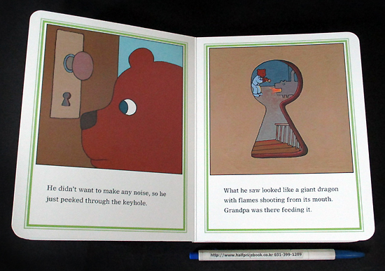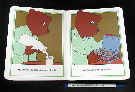 Baby Bear and his parents are having a sleepover at his grandparents house when he hears a scary noise. He looks through the cellar door keyhole and sees a dragon! Then he dreams the dragon comes upstairs and eats his milk and cookies. Bear is scared, but luckily his father shows him that the dragon is not what he thinks-and there are plenty of milk and cookies to comfort him.