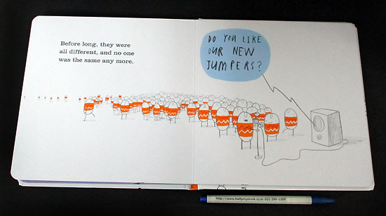 The thing about the Hueys is that they are all the same. They all look the same, think the same and do the same things. Until one day, Rupert knits himself a new jumper