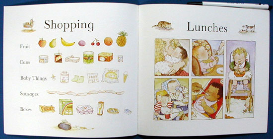 Babies, their families, and familiar objects and activities are depicted in whimsical drawings which present the daily routines of the lives of babies and their parents. Includes some vocabulary words.