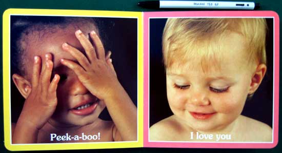 Two board books that preschoolers will love, particularly when snuggled in the lap of a loved one. Each page is filled with a color photo of a tot responding in some way to the photographer. Toothy grins and yawns, bright eyes, pouts, and tears deliver reinforcement for the spare text that echoes what all parents (and photographers) say and play to get that picture-perfect response; e.g., "Look at the birdie" and "Peek-a-boo! I love you." Toddlers love looking at other children and these titles hold plenty of interest for them.