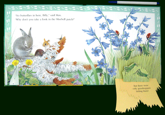 Join Billy Bunny and his woodland friends as they search under daffodils and bluebells for a magical insect called a "butterfly." Children will adore Maurice Pledger's beautiful illustrations in this playful tale of discovery. Throughout this classic peek-and-find adventure, children can help Billy by lifting the pop-up flaps as he looks under daffodils, water lilies, and a bluebell patch, only to find a surprise right under his nose! This interactive adventure inspires children's curiosity about the natural world, and a spectacular, full-spread pop-up scene highlights this classic story that is sure to win a new generation of fans.