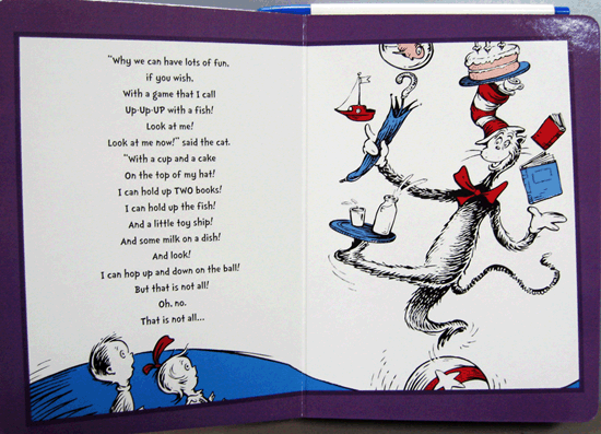 A beautiful board book edition of Dr. Seuss' timeless classic, The Cat in the Hat. Perfect for little cat fans! When Sally and her brother are left alone, they think they're in for a boring day -- until the Cat in the Hat arrives, bringing mayhem! This abridged edition of The Cat in the Hat has all the fun and madness of a day spent with the wacky cat, in a sturdy, toddler-resistant board book format.
