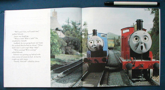 More adventures from PBS's popular Shining Time Station, captured in photographs of Thomas the Tank Engine and friends, tell of Edward's struggles to keep cows off the rails, among other stories.