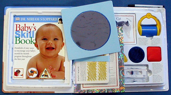 Whether parent's use the toys supplied in the kit or make use of others around the house, the reference book and cards will show you how to optimize play time. "The Golden Hour" is referred to regularly by author Miriam Stoppard, and can be any time of day you find convenient to your and your baby's schedule. In this hour, close interaction is key, and you'll be singing, tickling, showing, and playing peekaboo with a new appreciation of what these simple games develop in your baby. More active play-time suggestions involve pouring water, scrunching tissue paper, and starting a percussion band on the kitchen floor. Perfect for first-time parents, this kit is most worthwhile when begun within the first few months of life, as the toys and activities are specifically focused for the first 12 months. --Jill Lightner
